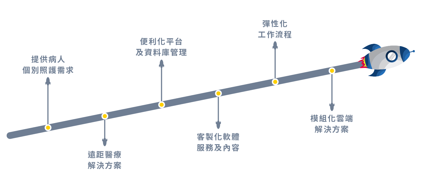 秉持著臺灣與世界接軌的精神,期許在全球醫療科技產業新創機會下,提供全方位智慧醫療服務解決方案。